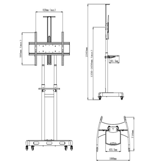 - TV Height Adjustment by Spring Button: 1350mm – 1650m